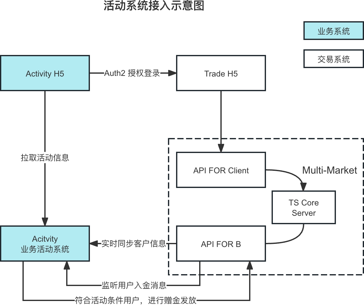Supports a variety of B-side APIs, and can provide business white labels for customized development of marketing activities. One business uses the B-side quota adjustment-bonus and system liquidation interfaces to develop marketing activities, such as airdrops for new customers, registration bonuses, and other activities.
